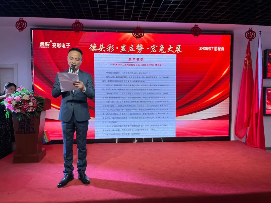 ▲曹立新先生 中國LED工程商聯(lián)盟秘書長(高級工程師) 曹秘書長雖未親臨年會現(xiàn)場,他給我們帶來了新年賀詞: 展望未來,我們滿懷期待!值此辭舊迎新之際,我謹(jǐn)代表中國LED工程商聯(lián)盟和全國精品巡展組委會向大家致以最誠摯的祝福! 在新的一年里,希望江蘇亮彩致力于為客戶提供更好的產(chǎn)品和服務(wù),不斷提升自身的綜合實力,把更多的創(chuàng)新產(chǎn)品推向市場,為更多的客戶提供更優(yōu)質(zhì)的服務(wù),為合作伙伴提供更完善的支持,讓我們一起攜手共進(jìn),共創(chuàng)輝煌! 酒興高至,此時情意正濃,讓我們在這載歌載笑的氛圍中,正式拉開今日宴會的序幕。 一等獎得主 年會怎么能少了大家最最最期待的抽獎環(huán)節(jié)呢? 我們的獎項設(shè)置如下: 新年好運來,把好運延續(xù),希望2023年大家都能“兔”來運轉(zhuǎn),鴻運當(dāng)頭。 相聚的時光雖然短暫,但這份感動和美好,卻將永遠(yuǎn)留存在我們心中。就讓我們相約在未來的前行路上,一路攀高,彼此照耀。也讓我們相約明年再會。 不負(fù)過去,不懼未來。 以奮斗之心,迎接2023!